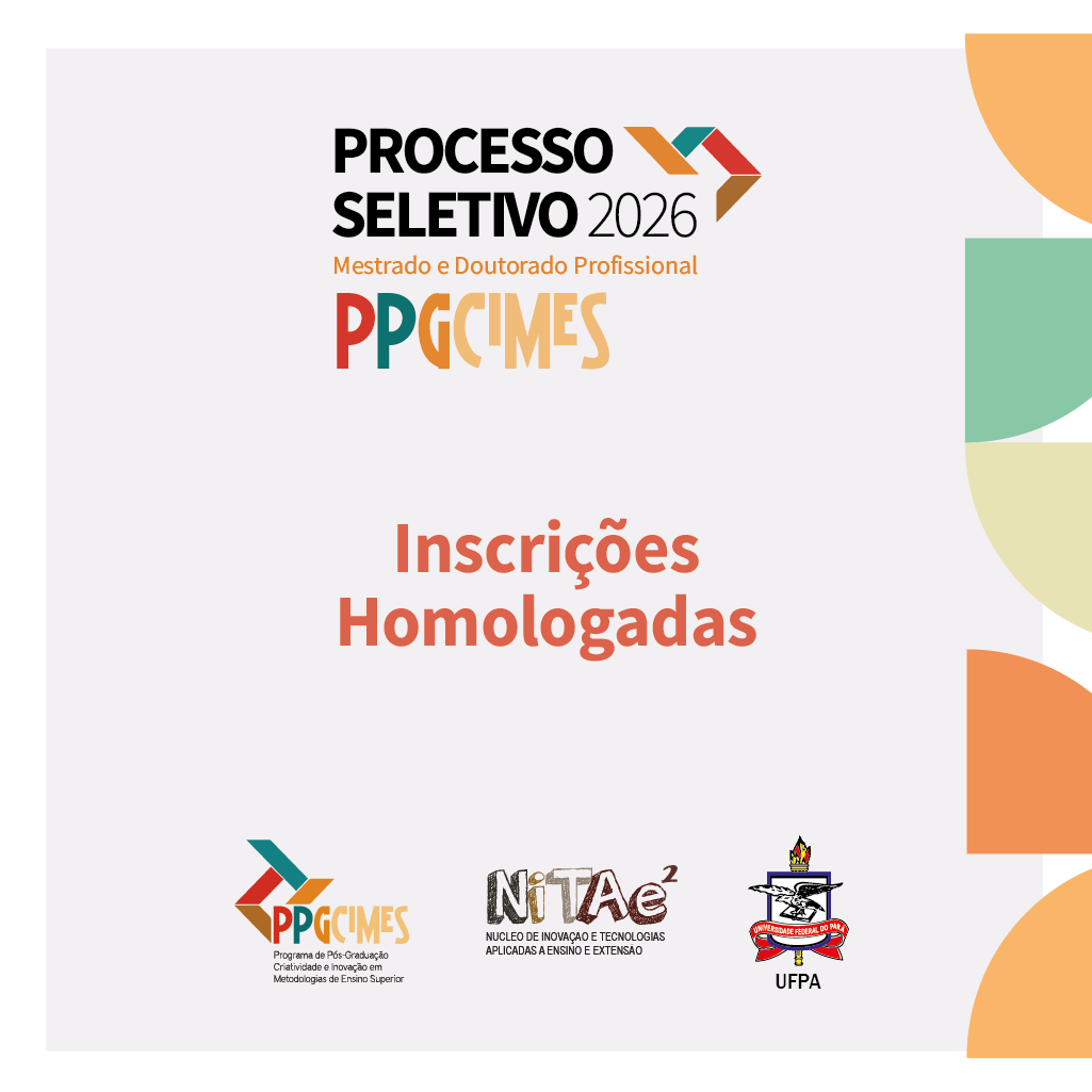 O Programa de Pós-Graduação Criatividade e Inovação em Metodologias de Ensino Superior (PPGCIMES), subunidade acadêmica do Núcleo de Inovação e Tecnologias Aplicadas a Ensino e Extensão (NITAE²) da Universidade Federal do Pará (UFPA), torna público o Edital do Processo Seletivo do PPGCIMES - Turma 2026.