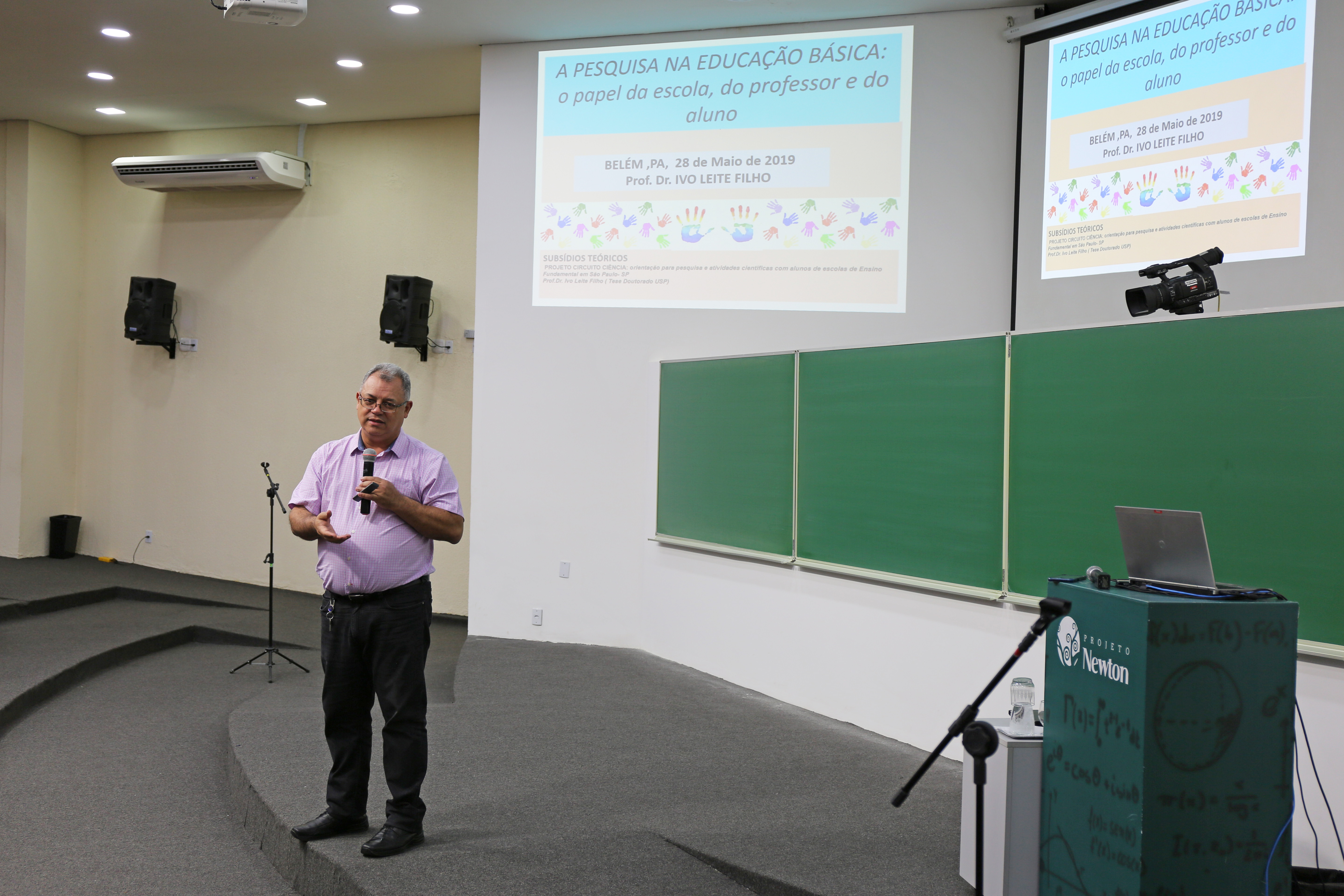 Essas foram algumas das reflexões suscitadas pela fala do prof. Dr. Ivo Leite Filho, Coordenador-Geral de Popularização da Ciência (CGPC) do Ministério da Ciência, Tecnologia, Inovações e Comunicações (MCTIC), que, no dia 28 de maio de 2019, esteve na Universidade Federal do Pará (UFPA), a convite do Programa de Pós-Graduação Criatividade e Inovação em Metodologias de Ensino Superior (PPGCIMES), para a palestra “A pesquisa na educação básica: o papel da escola, do professor e do aluno”, que teve lugar no Auditório do Prédio das Pós-Graduações do Instituto de Tecnologia (PGITEC) da UFPA e contou com transmissão ao vivo, pela internet, por meio do endereço eletrônico www.aovivo.nitae.ufpa.br.